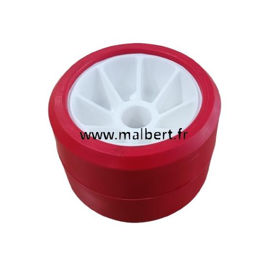 Galet 185 polyamide Bi matière rouge diamètre 120mm x 75mm monté sur bagues nylon Alésage 21mm