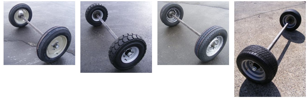 Ensemble essieu 1300kg carré 40mm + 2 roues 22/11x10 ext 1550mm 4x100mm