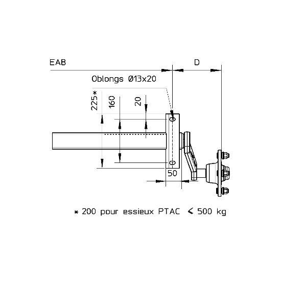 Demi essieux avec suspension non freinés la paire charge 750kg perçage roue 4x115mm moyeu équipé avec roulement cartouche