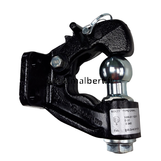 Crochet d'attelage remorque pour véhicule en 4 trous 13mm voir entraxe 85.7 x 44.5mm Charge 3500kg pour anneau et tête à rotule