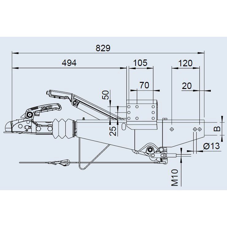 Tête attelage freinée pour remorque porte bateau , remorque plateau .. Modèle monopoutre 161S pour poutre carré 70mm 247685 / 1251904 / T-36543