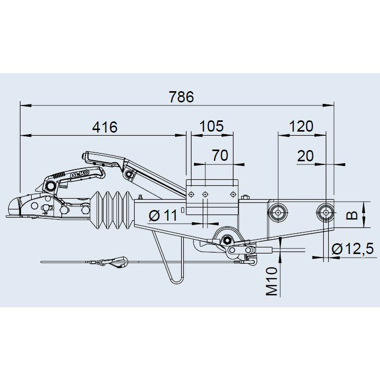 TÊTE FREINÉ Monopoutre ALKO 90S carré 60mm