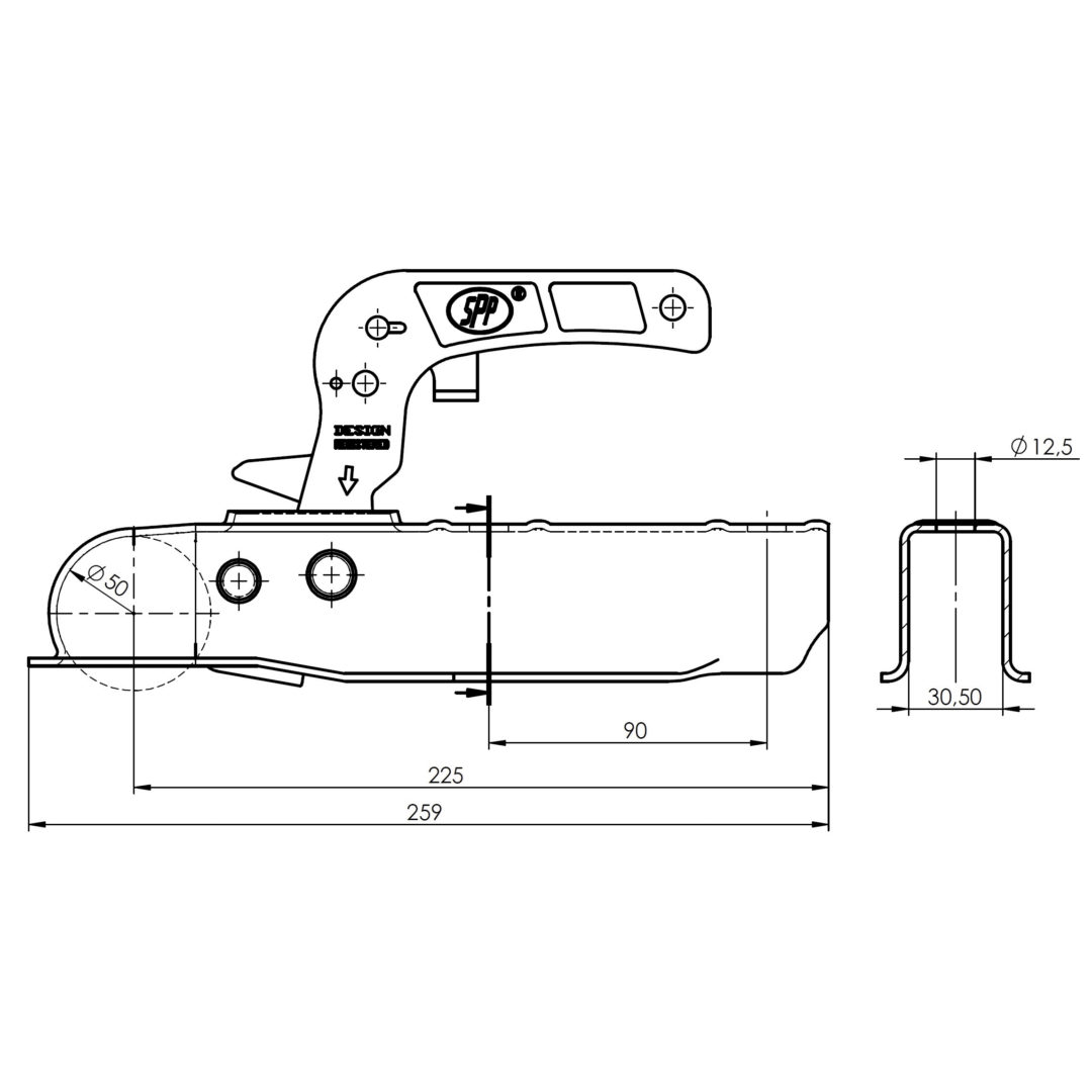 Tête d'attelage remorque tube Carré 30mm 750kg