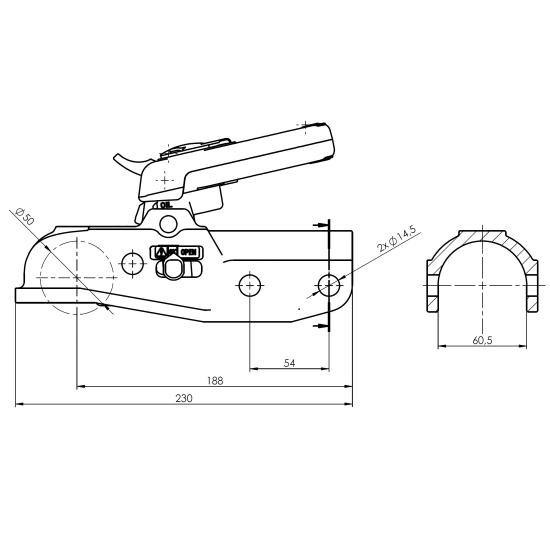 Tête d'attelage Rond 60mm 3500kg avec antivol