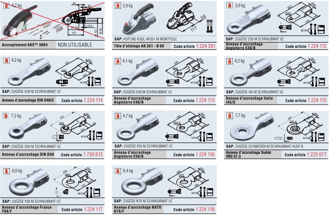 Boitiers freinés / Attelage / Pièces