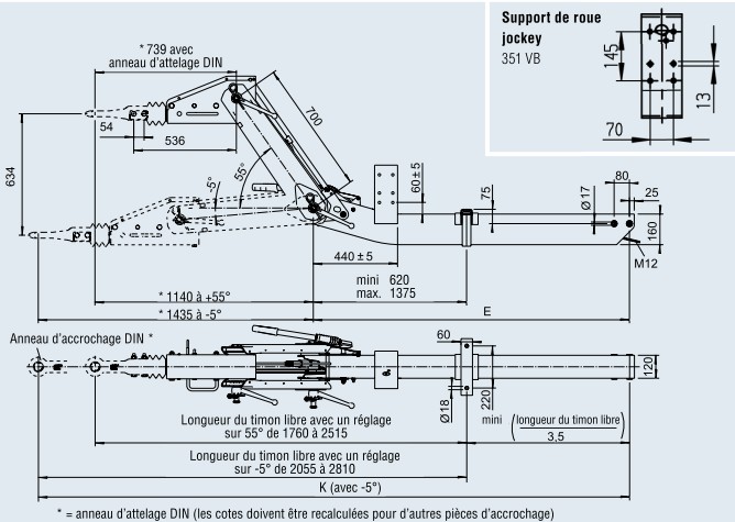 Timon réglable en hauteur ALKO 351 VB-2 optima 2500 à 3500kg