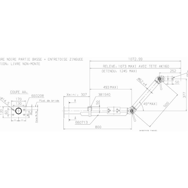 Timon réglable avec Platine de fixation arrière sur essieu jusqu'a 750kg non freiné