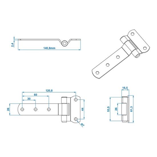 Charnière ridelle remorque 143x61mm