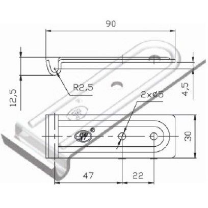 Crochet de grenouillère galvanisé pour remorque 90 x 30 mm Entraxe de fixation 22mm Montée sur les remorques SOREL