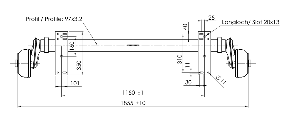 Essieu Pour remorque porte bateau Mecanorem MTX455F à 655F / MB1190