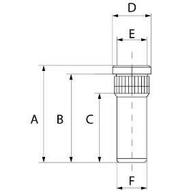 Goujon de roue essieu alko 369249 A :50mm / B :45.8mm / C : 34.70mm / D :23.63mm / E:18.78mm / F :14mm