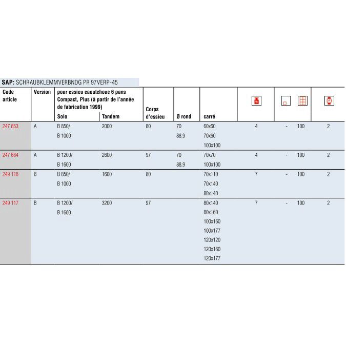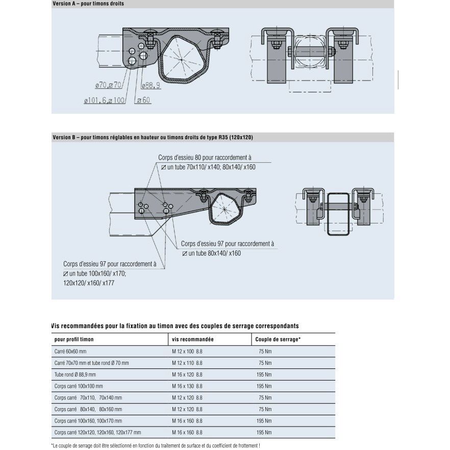 Liaison flèche timon droite essieu 1200 / 1600kg carré 80x140/80x160/100x160/100x177/120x120/120x160/120x177