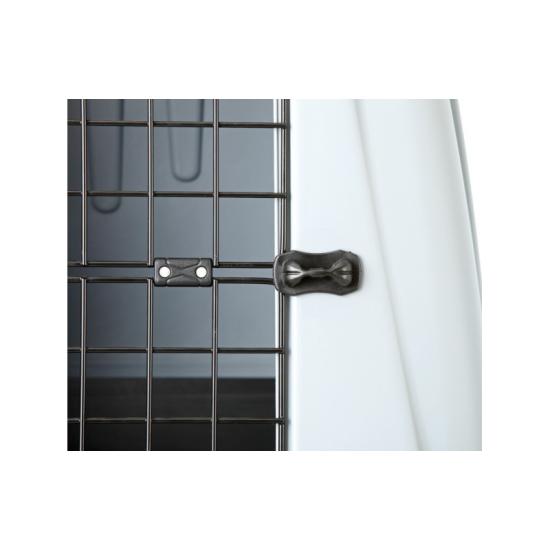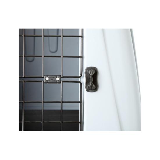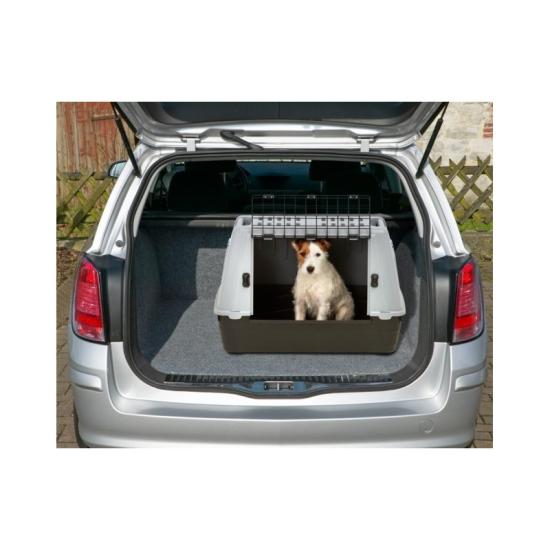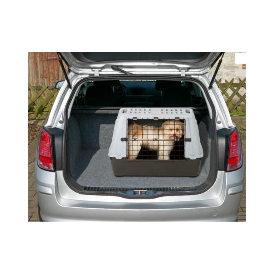 Seule la partie arrière est en plastique plein afin d'éviter la propagation des poils et des salissures dans le coffre. Les parois latérales ainsi que le dessus possèdent des fentes d'aération pour que l'habitacle soit toujours bien ventilé.