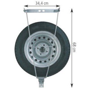 Porte roue de secours pour remorque , Galvanisé universel, adaptable sur tous types de roues 8 / 10 / 12 / 13 / 14 , reçoit un cadenas de sécurité diamètre 5mm ( non inclus )