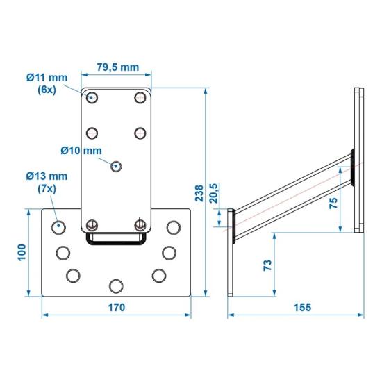 - Fixation sur le timon d'attelage ou au châssis de la remorque- Convient aux pneus de 8, 10, 12, 13, 14, 15 et 16 pouces- Dimensions : 23 x 16 x 17 cm- Matériau : acier galvanisé- Montage avec boulons (non inclus)