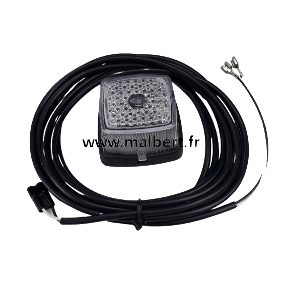 2 feux blanc avant sacex 2203 longueur 63mm largeur 67mm épaisseur 40mm + 2 fils 3m60 avec cosses pour raccordement dans le feu et broche pour raccordement sur le feu arrière